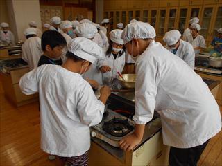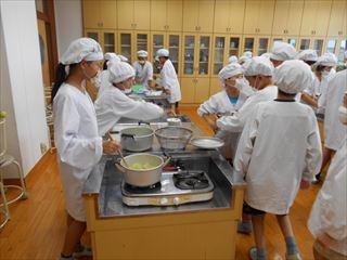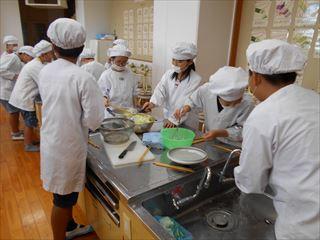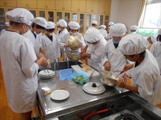 5年生が家庭科の学習で野菜サラダ作りに取り組んでいました。
