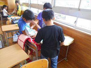 2年生は机の中や身の回りの整理をしていました。