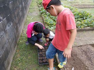 栽培担当の先生が秋の花の種をまいています。