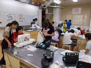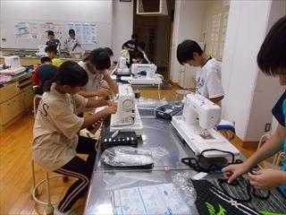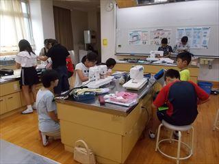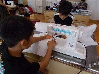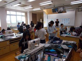 6年2組がミシンでナップザックを作っていました。