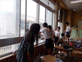 長洲小学校でも潮風や砂が吹き上げられ、校舎や植物にかかったり植物が枯れたりしました。