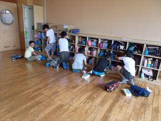 4年生です。ロッカーの整理をしています。