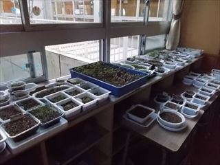 5年生が植物の実の学習で、ゴーヤの花の観察をしました。