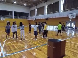 今日は雨だったので多目的ホールでドッジビーをしていました。