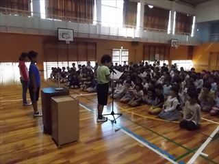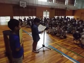 人権について学ぶことや話の聞き方など、6年生が人権集会の目的なども織り込み、立派な挨拶をしてくれました。