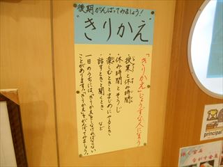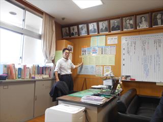 階段の踊り場には先日行われた1年生の授業の様子が掲示されています。