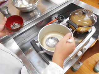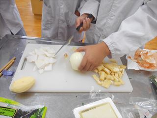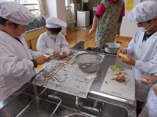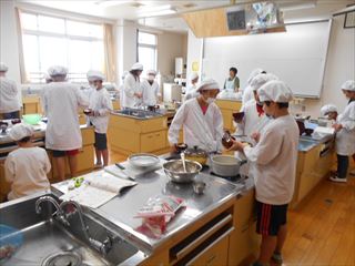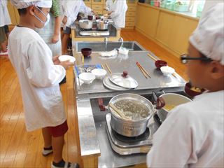 今日も4時間授業で下校となりますが、その前に救給カレーの体験を行いました。
