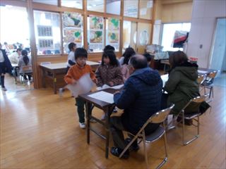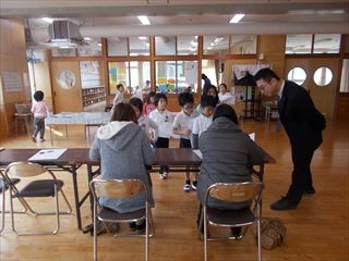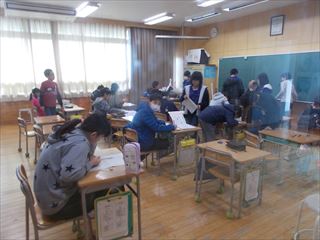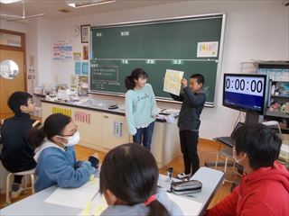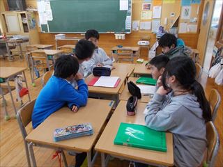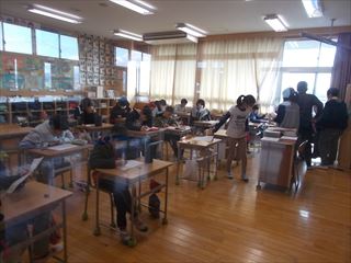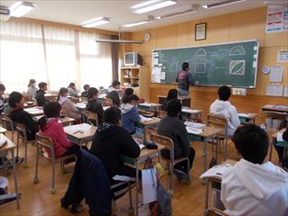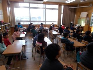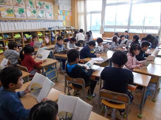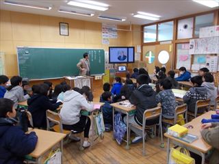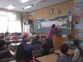 1月29日 投稿日時 : 2018/01/30 学校サイト管理者 1月29日(月)です。今朝も朝から総務委員会の子どもたちがあいさつ運動を頑張っていました。あいさつの仕方が上手に、声も大きくなってきているように思います。中学年では朝自習の時間に「まほうの小箱」さんによる読み聞かせを行いました。3年生です。4年1組です。4年1組ではパネルシアターによる読み聞かせでした。4年2組はお二人から読み聞かせがありました。子どもたちの目がきらきらしています。お二人目です。牛乳パックを利用した読み聞かせで、絵が次々に変わっていき、とても不思議でした。まほうの小箱さんの読み聞かせは、毎回工夫されていてあきることがありません。子どもたちもとても楽しみにしているようです。2校時にはなかよし学級の授業研究会を行いました。国語の「もののなまえ」の授業です。上位語から下位語を考えたり、その逆をしたり、またその資料として図鑑を使ったりしました。短いモジュールの組合せやクイズ形式が取り入れられ、楽しく集中力が続くよう工夫されていました。たくさんの先生が参観したので緊張したようですが、本当によく頑張っていました。先生たちからもいっぱいほめられました。放課後の研究会でも、たくさんの意見やアイデアが出され、深まった研修となりました。参観して良かった点や課題を付箋に書いて貼り付けます。課題を解決していくためどのようにすればよいか、みんなで考えを出し合いました。
