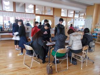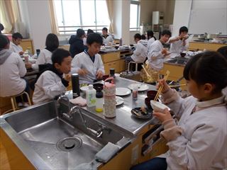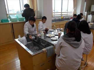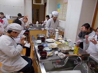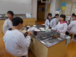 12月7日 投稿日時 : 2017/12/08 学校サイト管理者 12月7日(木)です。今日は5・6校時に4年生が御正忌だご作りを行いました。作り方は地域の婦人会の方々に教えていただきました。いもをゆで、あんこを丸めています。婦人会の方々に分かりやすく作り方を教えていただきました。ゆでて練ったいもを、あんこで包んでいきます。なかなか難しいようですが、頑張って作っています。出来上がった御正忌だごです。とってもおいしそうにできました。つくった御正忌だごをいただきました。とってもおいしかったようです。地域に伝わっているお菓子を作ることで、長洲町のことを詳しく知ったり、好きになったりできると思います。今日はとっても貴重な体験ができました。ご協力いただいた婦人会の皆様、ありがとうございました。