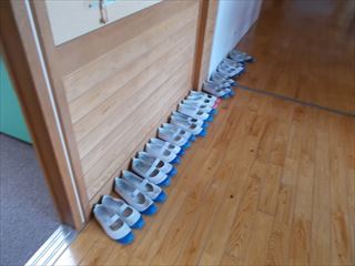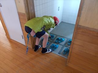 1月25日 投稿日時 : 2018/01/26 学校サイト管理者 1月25日(木)です。今朝も寒かったですね。今日はまず、なかよし学級のことを紹介します。朝のなかよし学級です。子どもたちがなかよく遊んでいました。絵本の上に絵を置いて遊ぶ遊びのようです。(すみません。写真がかなりぶれてしまっています。)なかよし学級では、一人一人に合わせた学習や生活の指導を行っています。教室の壁にも、たくさんの学習や生活に役立つ掲示物があります。子どもたちは、少人数で学習したり、交流学級で友だちと学び合ったりして、楽しく学習しているようです。階段の踊り場には、ALTの先生が新年に関する掲示を作成して下さっています。(紹介するのが遅くなりました。)昼休みです。風は冷たかったですが、日光が当たっているところは暖かく感じました。たくさんの子どもたちが運動場で遊んでいます。一輪車に乗る子どもたちも増えてきました。乗り方もとても上手です。掃除の時間です。無言掃除はまだまだですが、一生懸命掃除を頑張っている子どもたちを見かけることが多くなりました。トイレのスリッパもきちんと並べられるようになってきました。次に使う人のことを考えて並べることが大事ですね。