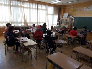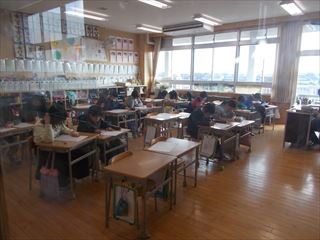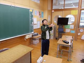 1月19日 投稿日時 : 2018/01/22 学校サイト管理者 1月19日(金)です。昨日の1年生に続いて、今日から3年生が学級閉鎖です。学級閉鎖になった学級の子どもたちには、ゆっくり体を休めて、また来週元気に出てきて欲しいと思います。運動場で遊んでいる子どもたちの数もとても少ないです。靴箱も1年と3年はさびしく感じました。今日は補欠で私も2年生に行きました。2年生は3年生になるのをとても楽しみにしているようです。3年生までの日めくりカレンダーが作成してありました。3時間目は体育で縄跳びをしました。準備運動も自分たちででき、お互いに跳んだ回数を数えあっていました。自分たちででき、とても素晴らしいです。4校時は生活科で花壇の草取りをしました。みんな頑張ってたくさんの草を取ってくれました。給食の準備や後片付けもとても上手です。たくさん褒めるとさらにやる気になってくれました。子どもたちは本当にかわいいですね。昨日のおまけです。出前授業の後にNHKの記者さんからインタビューを受けている子どもたちがいました。ちょっと緊張してるようでした。