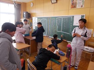 1月23日 投稿日時 : 2018/01/24 学校サイト管理者 1月23日(火)です。今日は朝からEタイムを行いました。5年生は、大型テレビやDVDなども自分で準備していました。自分たちできちんとできていて、とても素晴らしいです。インフルエンザに罹患し学校に来れない職員も多いので、補欠計画など工夫しながら行っています。6年生は1組と2組合同で授業を行う場面も見かけました。人数が多くて大変かと思いきや、子どもたちはみんなで仲良く学習でき、意外と楽しんでいるようです。4時間目、3年生が理科で電気を通すものと通さないものを調べる実験をしました。インフルエンザで欠席の子どもたちが多かったので、人数は少なかったですが意欲的に取り組んでいました。5時間目、4年生が体育で持久走と長縄の練習をしていました。大分上手に跳べるようになったきたようです。5年生は英語の授業でした。カード等を使って楽しく学習ができていました。2年生は養護の先生が強い体をつくるための保健指導をしていました。インフルエンザや胃腸炎なども流行しているので、学んだことを生活に活かしてほしいと思います。5年生は図工で工作展の作品作りに取り組んでいました。頑張って良い作品を作って欲しいですね。