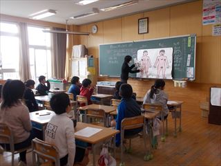 2月2日 投稿日時 : 2018/02/06 学校サイト管理者 2月2日(金)です。今日はきょういくの日で、性教育の授業公開を行いました。命の大切さや自分の体のことについての学習を学年の発達段階に合わせ、授業をしました。2年生です。2年生は私の誕生について学習しました。4年生は自分の体のことについて学習をしました。6年生はエイズについての学習を行いました。※すみません。授業の関係で1・3・5年生は写真が撮れませんでした。性教育は命の教育でもあります。本日の授業について、ご家庭でも話し合ってみてはいかがでしょうか。さて昼休みです。今日は曇りの天気でした。しかし、思ったより寒くなく、子どもたちが楽しそうに遊んでいました。昼休みの音楽室では4年生が二分の一成人式で演奏する合奏の練習をしていました。自主的に取り組んでいるようで、とても素晴らしいと思いました。休み時間の様子です。4年生教室では昔遊びが流行っていました。あやとりやお手玉など、上手に楽しく友だちと遊んでいました。書き初めの作品も掲示してありました。入賞した子どもたちの作品はさすが上手です。お手本としてみんながんばりましょう。
