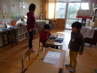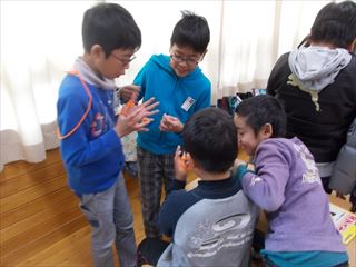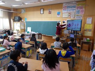 12月21日 投稿日時 : 2017/12/22 学校サイト管理者 12月21日(木)です。本日は朝からEタイムを行いました。Eタイムでは、フラッシュカードや歌、ゲーム等で楽しく英語を学んでいます。子どもたちは、やり方にもずいぶん慣れたようで、自分たちで準備をする姿も見かけました。おはじきゲームで楽しく英語を学んでいます。短い時間ですが集中して取り組むことができていました。