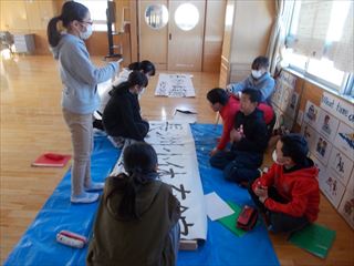 12月10日 投稿日時 : 2017/12/12 学校サイト管理者 12月11日(月)です。先週から総務委員会の子どもたちが、児童玄関で赤い羽根共同募金の募金活動を行っています。子どもたちも進んで募金に協力してくれているようです。みんなのために何か行動しようとするところが素晴らしいと思います。総務委員会の子どもたちも寒い中良く頑張っています。募金活動は今週いっぱいの予定です。今日は6年生の卒業制作を行いました。岱明の徳村剛山先生を講師としてお迎えし、自分の好きな字を書きました。作成した作品を額に入れ、掲示するそうです。初めに先生から作品づくりについての説明がありました。いつもは墨汁を使いますが、今日は墨をすって墨液をつくります。自分の好きな文字を書いていきます。真剣な表情でした。先生に見ていただいて、アドバイスをいただいています。きれいに書くだけでなく、アイデアや表現力も大切なようです。作品作りに集中しています。正座して姿勢もすばらしいですね。自分の思い思いの作品ができたようです。卒業制作の完成が楽しみです。