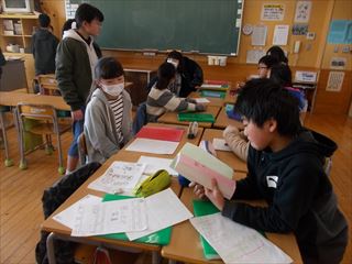 2月8日 投稿日時 : 2018/02/09 学校サイト管理者 2月7日(水)です。今朝の長洲小学校です。縄跳びで遊んでいる子どもたちを見かけました。さて今日はまず、昨日の続きを紹介します。6校時、6年生が卒業に向けての準備をしていました。グループに分かれ、卒業文集や呼びかけ、遠足の出し物などの計画を立てていました。始めに担任の先生から説明がありました。卒業制作グループです。紙に書いた文字をカーボン紙を使って木に転写しています。タイムカプセルとボランティアのグループです。タイムカプセルに入れるものの話し合いをしていました。呼びかけグループです。昨年の呼びかけを基に呼びかけを考えています。遠足の出し物グループです。楽しく思い出に残るような出し物の工夫をしています。卒業文集グループです。文集の内容や書き方について相談しています。1年生との交流会グループです。1年生を楽しませる企画を立てていました。最後に各グループから、進捗状況について報告がありました。ちょうど、長洲中から職場訪問で中学生が見学に来ました。さすが中学生です。言葉づかいもきちんとしていますし、熱心にメモをとっていました。卒業に向けていろいろな行事があります。それを自分たちで計画し、実行していくことは大変なことですが、その分たくさんの学びがあります。色々な経験を通して学び、友だちと協力することで、良い思い出をつくって欲しいと思います。給食の時間です。2月に入ってから、6年生が順番に校長室で校長先生と一緒に給食を食べています。ちょっと様子をのぞかせてもらいましたが、校長先生と話しながら給食を食べ、とても楽しそうでした。きっと小学校生活の良い思い出になることでしょう。長洲小学校の様子からは話がそれますが、本日は長洲中学校の授業参観があり、小中連携で参観させていただきました。私が着いた時はちょうど清掃の時間で、子どもたちが玄関を一生懸命雑巾がけしていました。写真は長洲小出身の1年生です。無言でしっかり頑張っていて、小学校の子どもたちも見習って欲しいと思いました。どの学年の子どもたちも落ち着いた様子で授業を受けていて、安心しました。また会った時など、進んで挨拶と声をかけてくれ、長洲の子どもたちの優しさや素直さを感じました。来年長洲小学校にお世話になる6年生にも今日の中学校の様子を伝えたいと思います。また長洲小学校の話題に戻ります。6校時は学力充実の算数を行いました。写真は6年生です。6年生になるとなかなか難しく、子どもたちも頭をひねりながら取り組んでいました。