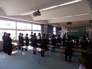 2月13日 投稿日時 : 2018/02/14 学校サイト管理者 2月13日(火)です。三連休はいかがでしたか?荒尾玉名方面でも雪が降り、寒い連休となりました。今朝も玉名辺りでは雪が残っていましたが、長洲に近づくにつれ雪が見られなくなりました。少しの距離でも気候が少し違うように感じました。さて、今朝の長洲小様子です。先週まではキックベースが流行っていましたが、今朝はサッカーをしている子どもたちが多く見られました。シュートもとても上手です。放送委員会の子どもたちが、朝の放送を頑張っていました。この放送のおかげで、気持ちよく朝のスタートを切ることができます。他の委員会の子どもたちも、自分たちの放送の準備をして待っていました。4年生は16日に二分の一成人式を行う予定です。その準備が着々と進んでいるようです。昼休みです。少し暖かくなったようです。たくさんの子どもたちが遊んでいますが、1年生の黄色い帽子の数が多かったように感じました。玄関前でも1年生が楽しそうに縄跳びをして遊んでいました。5校時です。家庭科室で5年生がミシンの学習を行っていました。使い始めて間もなくですが、手際よく布を縫う上手な子どももいました。チャコペンでぬいしろなどの目印をつけていきます。仲良く楽しそうに作業している姿が印象的でした。同じ5校時、多目的ホールで6年生が卒業式の歌の練習をしていました。歌の練習ももちろんですが、担任の先生が歌ができたいきさつや歌詞の意味などを説明していました。歌に込められた思いを考えながら歌います。階段の踊り場ではALTの先生が、バレンタインデーの掲示を作成していました。見て楽しみながら、子どもたちが知らず知らずのうちに英語に慣れ親しんでいきます。いつも本当にありがとうございます。6校時、運動場で4年生が長縄をしていました。連続で跳ぶために、声をかけたり間をできるだけ詰めたりと工夫して取り組んでいました。最高記録を出すことができたでしょうか?