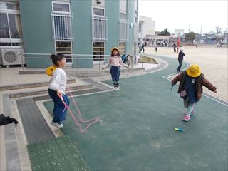 1月16日 投稿日時 : 2018/01/17 学校サイト管理者 1月16日(火)です。今日は昨日までより、幾分寒さがやわらいだ朝となりました。運動場の様子です。昼休みは野球をやっている子どもたちも多いのですが、朝はサッカーが多いようです。子どもたちなりに何か決まりでもあるのでしょうか?サッカーだけでなく、縄跳びをして遊んでいる子どもも見かけました。写真の子どもたちは、二重跳びを上手に跳んでいました。縄跳び運動は跳んだ分だけ上手になります。楽しみながら遊んで、たくさんの子どもたちに上手になって欲しいと思います。話は変わりますが、ついに長洲小学校でもインフルエンザが流行し始めました。職員室にある出席を確認する表も、出席停止が増えてきています。学校でも換気や手洗いなどに指導を行っていますが、ご家庭でも人混みをさける、休養を十分とる、マスクを持たせるなどの対策をしていただけると助かります。昼休みはいつものように、たくさんの子どもたちが運動場で遊んでいました。今日は暖かかったので外に出る子どもたちの数が多かったようです。6時間目、4年生が体育の時間長縄に挑戦していました。4年生になるとさすがに跳び方も上手です。協力してリズムよく跳ぶことができていました。