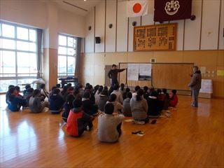 1月18日 投稿日時 : 2018/01/19 学校サイト管理者 1月18日(木)です。今日は朝から霧がかかっていました。朝の学校の様子です。今日の3校時に地域学習の出前講座を行いました。内容は、ながす羽衣琉金についての紹介です。噂のながす羽衣琉金です。実物は初めて見ました。開会の後、長洲町長である中逸博光様よりご挨拶をいただきました。その中で、中逸様自身も長洲小OBであること、ながす羽衣琉金はジャンボオランダシシガシラに続いて長洲町で生まれた金魚であることなどを話していただきました。次に、町の農林水産課の松岡さんに、この出前講座の目的について説明していただきました。目的はながす羽衣琉金について地域の子どもたちに知ってもらいたいことと、全国の人たちに好きになってもらうため、まず、長洲町の子どもたちに好きになってもらうためです。その後、養魚組合の松井組合長はじめ、島﨑さん、徳永さんに、ながす羽衣琉金について詳しく説明していただきました。説明の中で分かったことは。・ながす羽衣琉金をつくるため5年もかかったこと。・毎年2万匹生まれる金魚の中から、黒が入った金魚を見つけ、交配してきたこと。・やめようと思ったこともあったが、仲間がいたから頑張れたこと。・江戸川琉金の形をくずさないよう、琉金だけをつかったこと。・エサなどもとても気をつかっていること。などです。とても大変な努力をされて、この新しい金魚ができたことが良く分かりました。また、子どもたちに金魚の上手な飼い方も教えていただきました。金魚の飼い方にもコツがあり、子どもたちもとても勉強になったようです。お話を聞いて感想を発表しました。「金魚の上手な飼い方が分かって良かったです。」という感想や、「養魚組合の方々の努力がすごいと思いました。」という感想、「金魚のことを知り、長洲町がもっと好きになりました。」という感想など、自分が感じたことを立派に発表できました。養魚組合の方々より、缶バッジを頂きました。大切に使わせて頂きます。頂いた缶バッジです。児童代表お礼の言葉です。6年生代表児童が立派にお礼を言ってくれました。最後にながす羽衣琉金を実際に近くで見て、教室に帰りました。この学習を通して、子どもたちの言葉にもあった、努力や協力の大切さ、郷土を愛する心などをより深めることができたように思います。ご協力いただいた養魚組合と長洲町役場の方々、本当にありがとうございました。4校時には、中学年が持久走の練習を頑張っていました。昼休みの様子です。3月の一輪自転車大会に向けて、一輪車に乗っている子どもたちもいました。自主的に取り組んでいてえらいと思います。