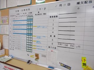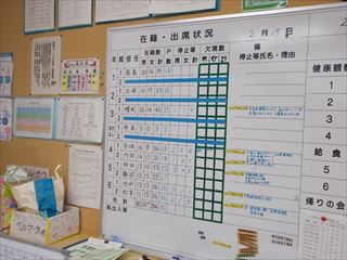 2月14日 投稿日時 : 2018/02/15 学校サイト管理者 2月14日(水)です。今朝もいつもと変わらず寒かったですが、日中は3月か4月並みの陽気になるそうです。運動場の様子です。朝から一輪車で遊んでいる子どもたちがいました。長洲小学校には、恥ずかしがりの子どもが多いみたいです。カメラを向けると、すぐに逃げていってしまいました。業間には体力向上で、持久走大会の練習をしました。低学年は運動場の内側、高学年は外側を走ります。体力向上の時間はあまりとれませんが、少ない機会を生かして一生懸命走っている子どもが多かったように思います。運動場内側コースです。外側コースです。さすが高学年。100m走のようなペースで走っている子どもたちがいました。今日の出欠確認表です。インフルエンザが落ち着いたと思ったら、また増えてきました。今回は高学年の方が流行しているようです。手洗い・うがい・マスクなどで予防して乗り切りたいですね。6校時はクラブ活動を行いました。今日は3年生のクラブ見学でもありました。3年生が各クラブを見て回り、来年度入るクラブの参考にします。高学年の子どもたちは、クラブ長を中心として活動内容を紹介したり、何をしているか説明したりしました。3年生はクラブ長の説明をしっかり聞き、活動を楽しむ場面もあったようです。※写真はパソコンクラブです。パソコンクラブの子どもたちはクラブ見学を楽しみにしていたようです。3年生のお手本となるよう張り切っていました。ランドセルなど、とてもきれいに並べてあります。上靴もきちんと並べられていて、すばらしいですね。