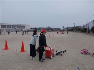 1月24日 投稿日時 : 2018/01/25 学校サイト管理者 1月23日(火)です。今朝は雪が降っていました。量はそんなに多くはありませんでしたが、子どもたちが喜んで雪を集めたり触ったりしていました。始業前の様子です。うっすらと雪があるのが分かりますでしょうか?雪が降るくらい寒くても、長洲っ子は元気です。元気よくサッカーをして遊んでいます。3年生は学級閉鎖ですが、他の学年はインフルエンザも大分落ち着いてきているようです。2時間目に5年生が工作展の作品作りで糸のこを使っていました。初めて使う子どももいたようですが、上手に板を切っていました。難しい所は先生に手伝ってもらいました。良い作品ができるよう頑張りましょう。3・4時間目には5年2組が家庭科でミシン縫いの学習をしていました。こちらも初めての子どもたちが多かったようですが、安全に気を付けて上手にミシンを使うことができていました。昼休みです。縄跳びを頑張っている子どもたちが増えてきました。写真の子どもたちは6年生です。二重跳びや、あや跳びを上手に跳んでいました。とても寒い中ですが、地中熱換気システムの工事が進んでいました。給食準備室前は室外に配管を通しています。話は変わりますが、昨日3年生の的ばかい学習がありました。的ばかいについて地域の方がいろいろ教えて下さり、お守り作りの体験もありました。地域の伝統行事に触れることで、地域の良さを知ったり、地域を愛する気持ちを育てることができます。教えていただいた地域の方々、本当にありがとうございました。