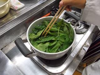 説明の後、ホウレンソウをゆでています。