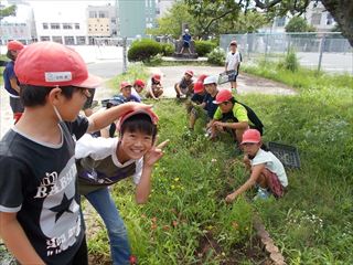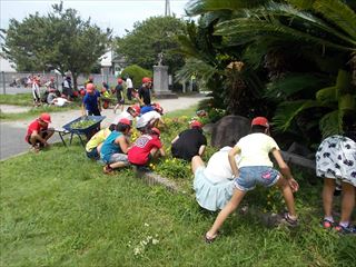 梅雨時の雨で、花壇や学級園の草がかなり伸びていました。