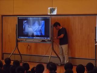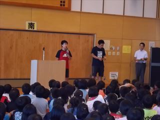 6年生の子どもたちが校長先生の話のサポートをしてくれました。