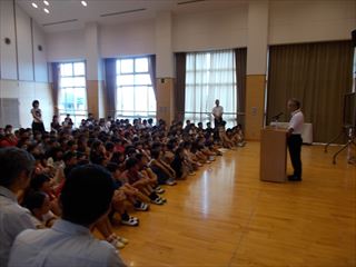 校長先生より、今まで頑張ったこと、夏休みに守って欲しいことなどの話がありました。