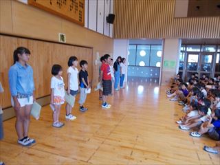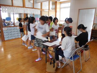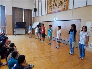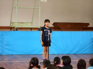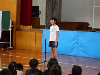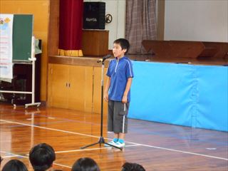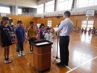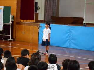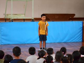 童話発表会他 投稿日時 : 2017/07/03 学校サイト管理者 物洗口を行いました。PTAの方々が準備をして下さっています。いつもありがとうございます。教室ではグーグーペタピンの歌で、子どもたちが正しい姿勢をとり、黙想をして心を落ち着けていました。2時間目から童話発表会を行いました。さすが各学年の代表です。どの発表も素晴らしかったです。3年生代表の発表です。2年生代表の発表です。1年生代表の発表です。4年生代表の発表です。5年生代表の発表です。6年生代表の発表です。子どもたちもしっかり発表を聞くことができていました。最後に玉名市で童話発表会の審査をされている上原優子先生より、講評と「かたあしだちょうのエルフ」の本の読み聞かせをしていただきました。どの学年の発表も素晴らしかったです。表彰状をもらってうれしそうでした。今までがんばってきた分、喜びも大きかったのではないでしょうか。参加して下さった保護者の方々もありがとうございました。
