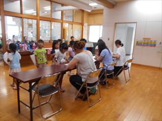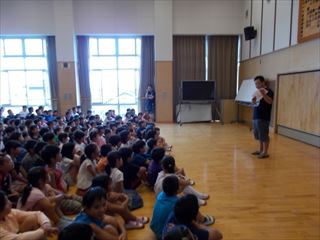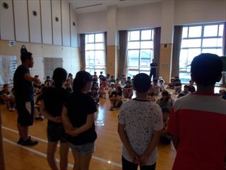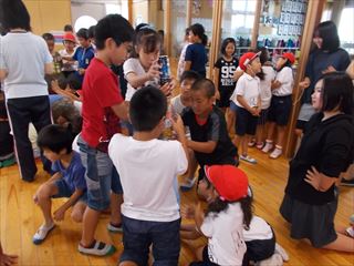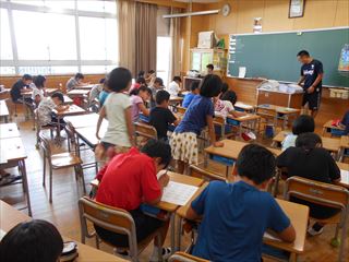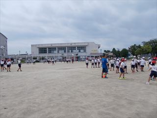 7月12日 投稿日時 : 2017/07/13 学校サイト管理者 11日(火)から5年生は集団宿泊に芦北に行っています。少しですが様子を紹介します。環境センターでの学習の様子です。水の汚れ具合を調べている?ところだと思います。芦北青少年の家での食事の様子です。みんな元気に楽しく食べているようです。一方、こちらは長洲小学校です。業間にドッジボールの体力向上を行いました。5年生がいないので、人が少なく見えます。どの学級も楽しくドッジボールを行っていました。