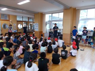歯の指導 投稿日時 : 2017/06/27 学校サイト管理者 26日(月)は中学年の歯みがき指導がありました。長洲町の歯科衛生士の方々が来校され、子どもたちに歯みがきの大切さやブラッシングのやり方についてご指導いただきました。写真は4年生の様子です。指導していただいた歯科衛生士の方々です。鏡を見ながら、丁寧にブラッシングをしています。赤くなっているところは磨き残しがあるところです。磨き残しがあるところはこれから念入りに歯みがきして欲しいですね。磨き残しがある場所を赤で塗ることで、自分の磨き方のくせを知ることができます。みんな真剣に取り組んでいますね。