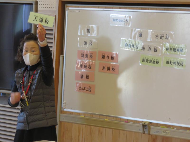 町役場税務課の方に来ていただき、税金について学びました。将来は納税者となって世の中の為に役立つ人材にならなければなりません。そういう意味において、学校は、納税者を育てるところ、とも言えますね。