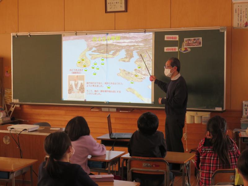 長洲町の文化財保護に関わっておられる方々をお招きして、長洲がどうやってできたのか学ぶことができました。今の住宅地がほとんど海だったことを知り、子供達はびっくりしていました。