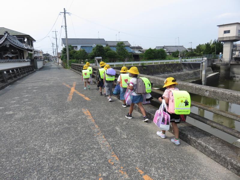 毎週火曜日、木曜日は時間割の都合で1年生だけで下校します。5月末まで職員が見守りしながら一緒に下校していましたが、6月からは自分達だけとなりました。地域の皆様、見守りをお願いします。