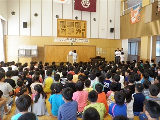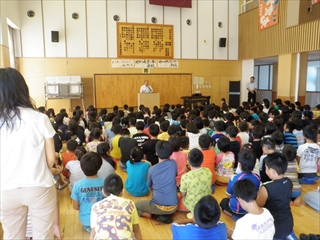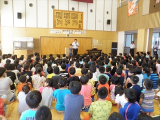 業間に全校児童が集まり、校長先生の話を聞きました。
