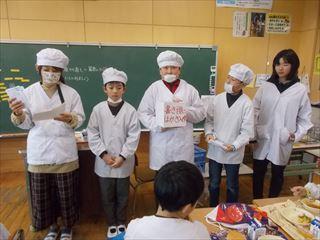 給食委員会の発表では、給食を感謝して食べること、