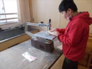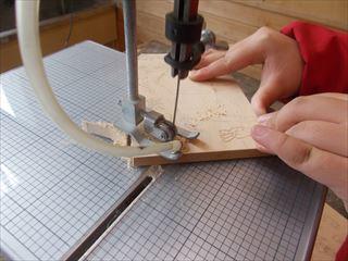 3時間目、6年生が糸のこを使って工作をしていました。