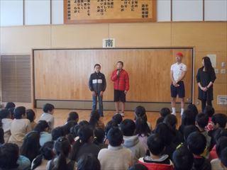 業間に全校集会を行いました。