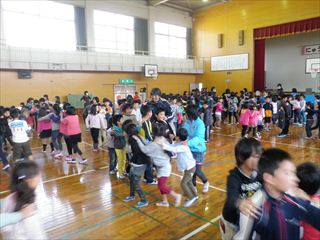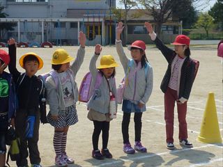 遠足の前に体育館で「一年生を迎える会」を行い、新入生の自己紹介やじゃんけん列車・もうじゅうがりなどのゲームを行いました。