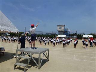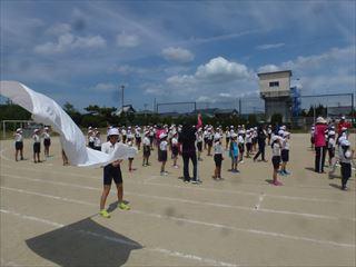 放課後、運動場では応援団の子どもたちが練習をしていました。