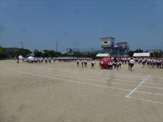 綺麗な学校で、気持ちよく運動会の練習を始めることができます。