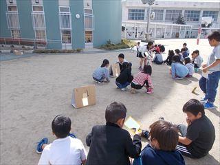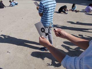 日光を鏡ではね返した所があたたかくなるかを確かめています。