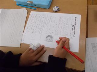 4年生が講師の先生にお迎えの言葉を書き込んでいました。