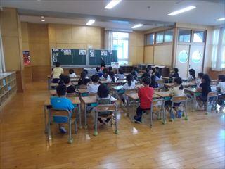 たくさんの参観者が来られるので、広い鯉フロアで授業を行います。