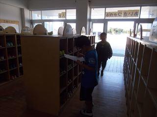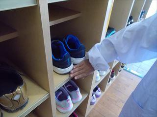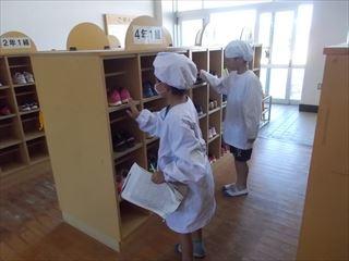 給食準備の時間に5年生が靴が並んでいるかチェックをしていました。