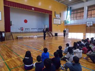 腹赤小の代表児童がはきはきと挨拶をしました。