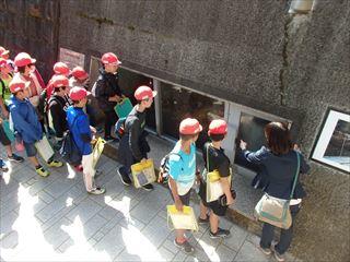 小学校内には資料館があり、裏の方には防空壕跡が残っています。