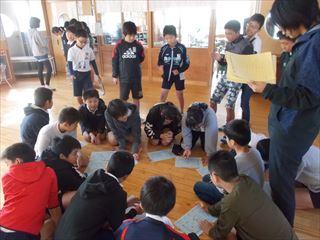 これは朝から総務委員会の子どもたちが、縦割り班の班長に説明をしている所です。