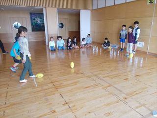 ラグビーボールはどこに転ぶか分からないのでなかなか倒すのが難しかったようです。